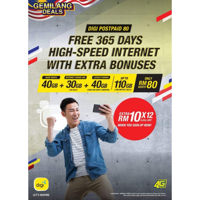 Now with lots of data and more ways to use it, especially when sharing digi postpaid 58 jom start. Digi postpaid 58 rm58 / month. Similar to celcom's mega plans digi features three different postpaid plans which include digi postpaid, digi postpaid unlimited calls and sms. Free roaming and idd to 10 countries. In summary, on digi postpaid 80 you'll start with 40gb of data each month for rm80/month and you'll get upgraded to 70gb/month after 2 years of subscription.